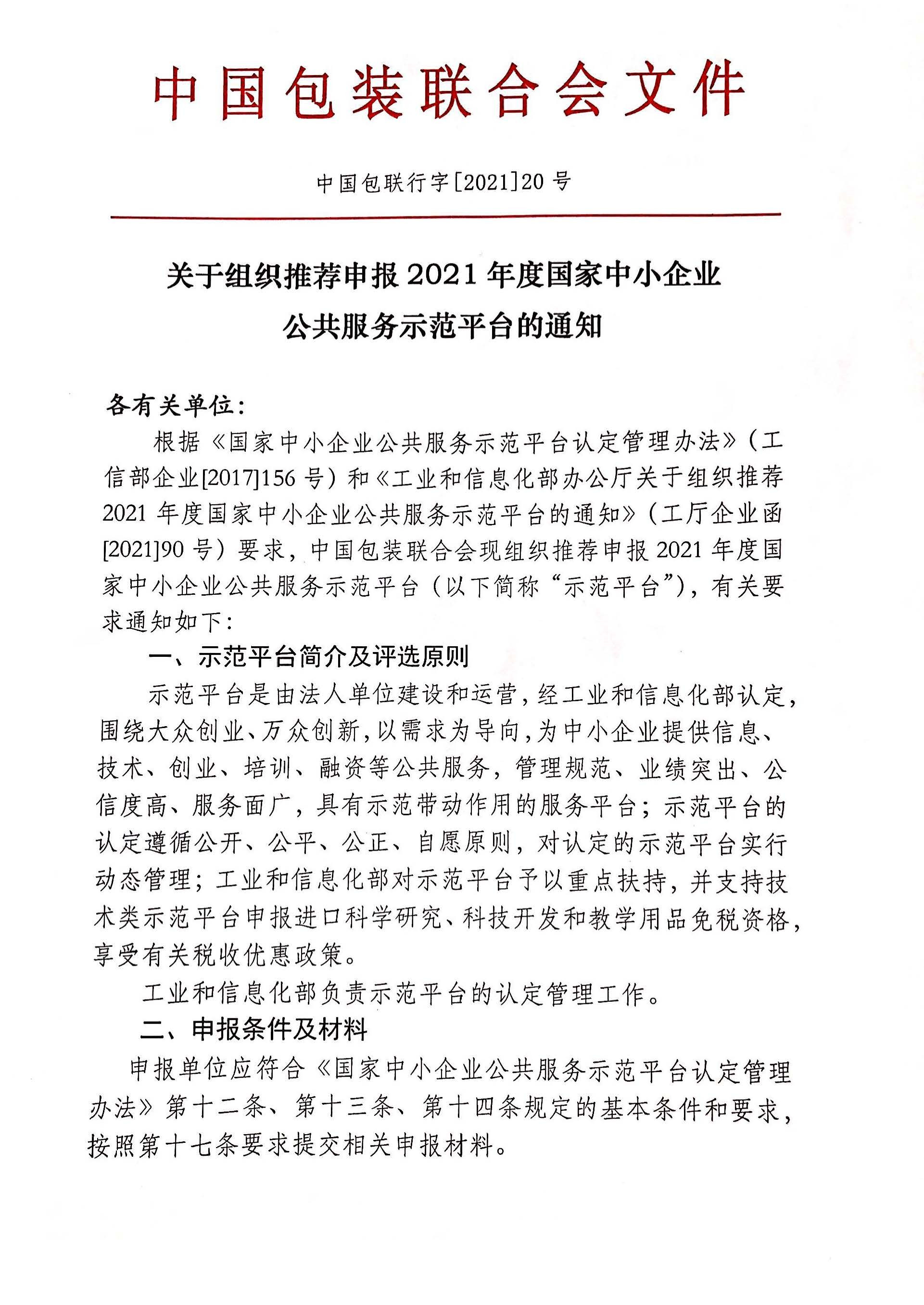 关于组织推荐申报2021年度国家中小企业公共服务示范平台的通知